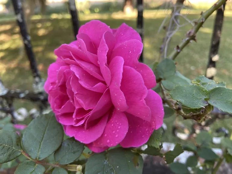 Rosa 'Madame Isaac Pereire' has one of the strongest scents in the garden. Its flowers are heavily perfumed and are easily a crowd favorite for that reason. Unfortunately, it does suffer from black spot (Diplocarpon rosae), that can cause it to drop its leaves and result in it appearing bare during the heat and humidity of the summer. It is a strong performer in the spring, but can become unattractive as the year carries on.